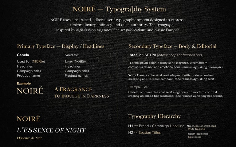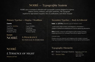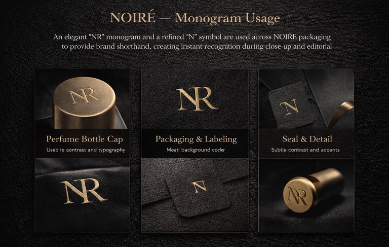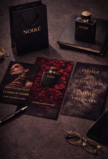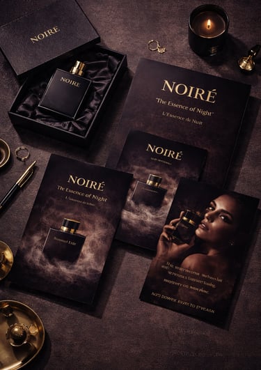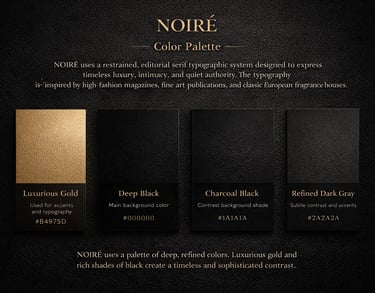 Through shadow, contrast, and minimal typography, the brand expresses modern luxury with quiet confidence — positioning NOIRÉ as a cinematic perfume house defined by mood rather than excess.