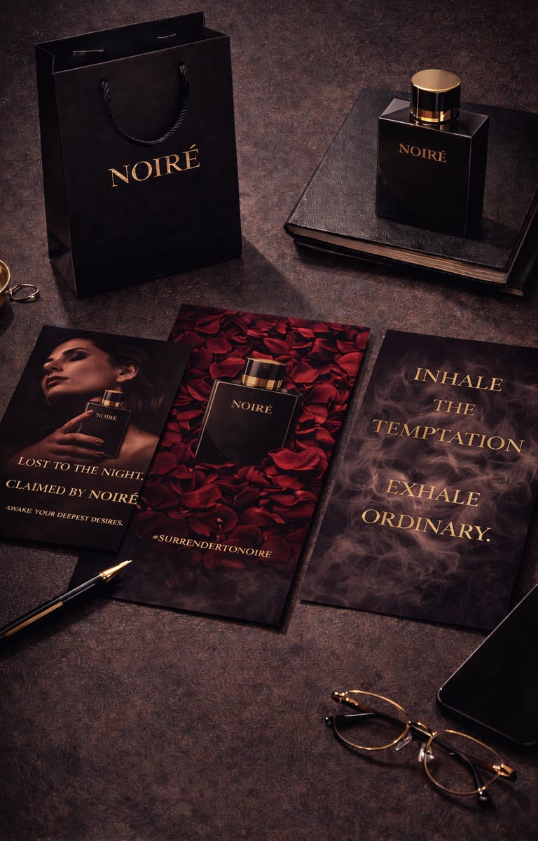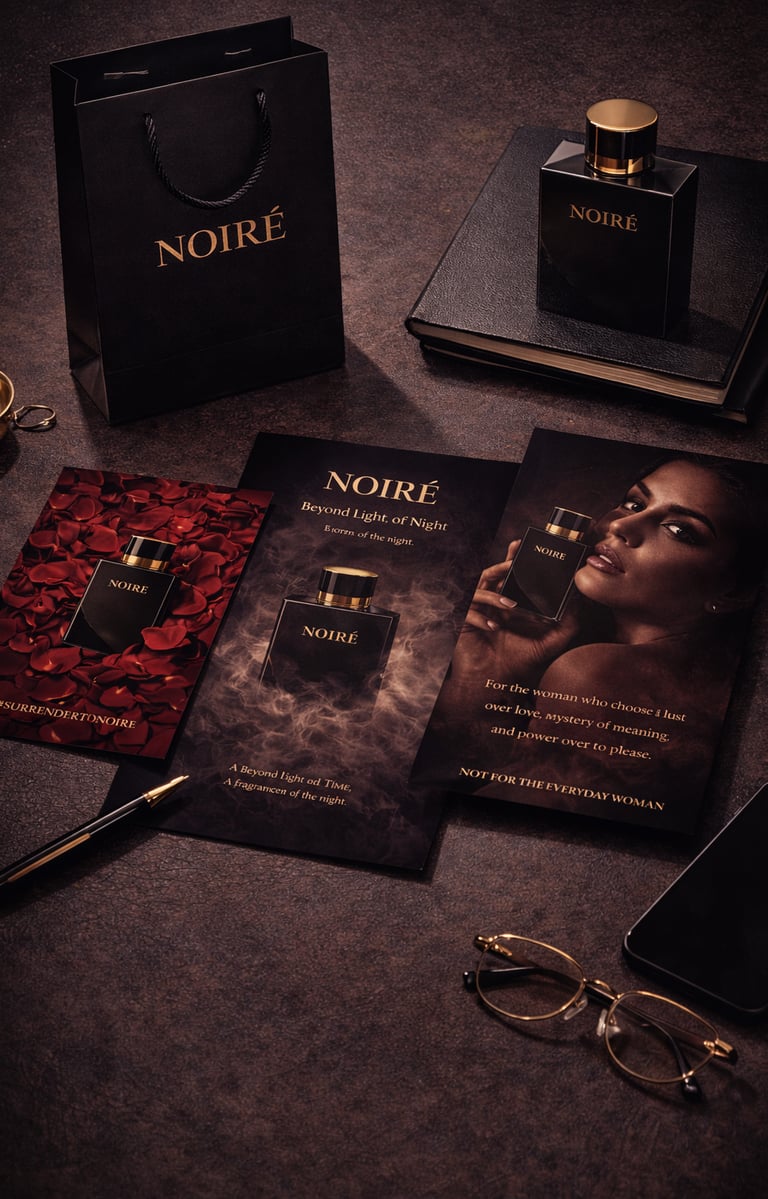 NOIRÉ is a dark editorial fragrance identity built around atmosphere, sensuality, and restraint.