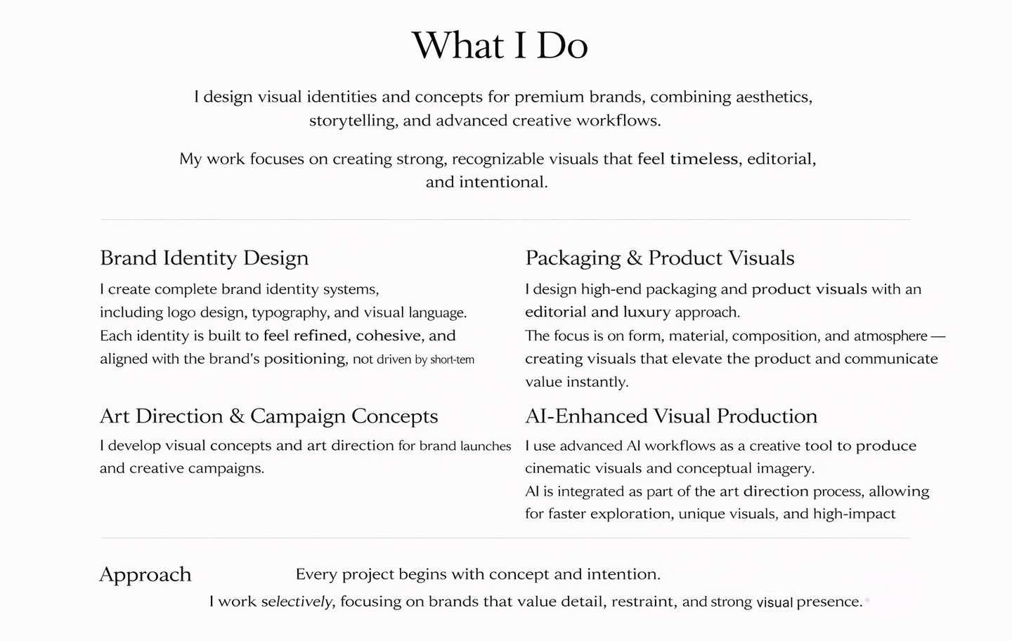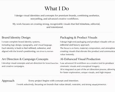 We do not follow trends — we design identities built for longevity, restraint, and strong editorial presence.